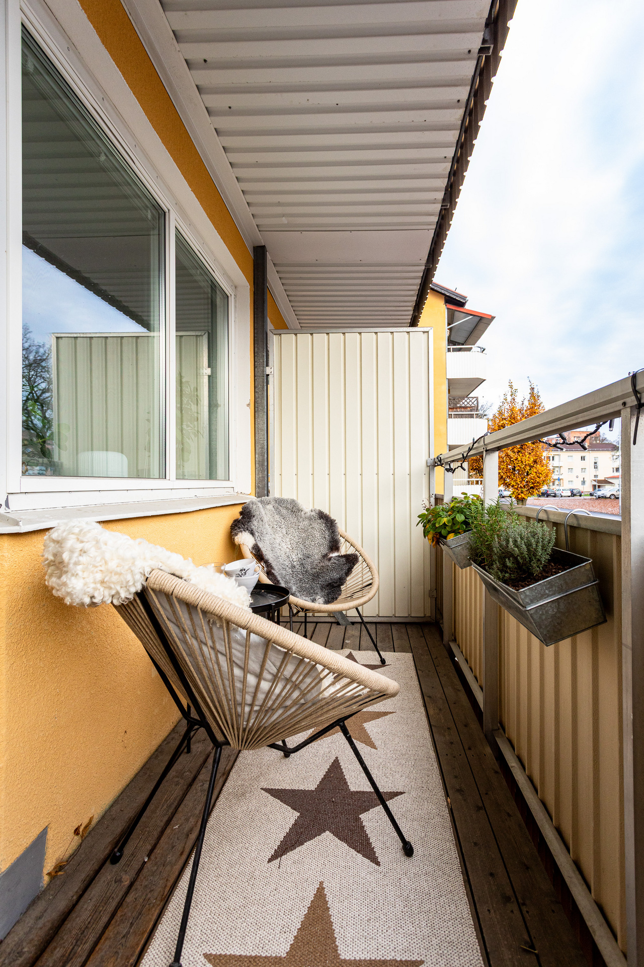 Bostaden har två rymliga balkonger i söderläge med utsikt mot Himlabacken och Fogdegatan.