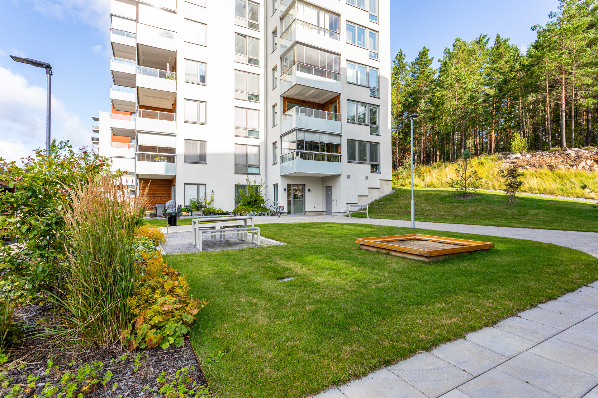 Vill du bli nästa ägare till denna trivsamma etta om 34,5 kvm i markplan? Här bor du omgärdad av Odlarskogens lugn men ändå på bekvämt avstånd till stadskärnan, tågstation och välsorterade matbutiker, läget ger alltså en perfekt kombo av det de flesta söker. Kliv innanför dörren och känn att en hemma känsla infinner sig, byggnaden stod klar för inflytt år 2023 och allt känns sådär nytt och fräscht. Genomgående vitlaserat trägolv, ljusa väggar och stora fönster åt två väderstreck. Här har man inte tummat på förvaringen, vid entrén har en rymlig skjutdörrsgarderob fått ta plats. Man har också tänkt till med en sovalkov, en given plats för sängen, vilket då tillåter rummet att möbleras med både soffa och matbord. Köket är självklart fullt utrustat med bl. a diskmaskin. Stort och helkaklat duschrum med alla bekvämligheter, så som tvättmaskin och torktumlare. Uteplats med soligt söder läge som rymmer både loungemöbel och matgrupp, här får man även grilla på elgrill. Varmt välkommen att anmäla dig till visning!